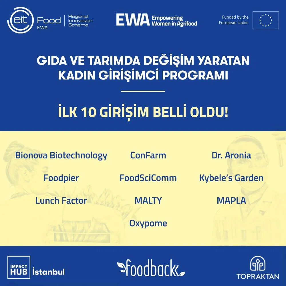 As Kybele’s Garden, we will take our startup further within the scope of the “Empowering Women in Agrifood – EWA” program supported by the European Union EIT Food Together and partnered by Impact Hub Istanbul, Foodback.co and Topraktan.co !